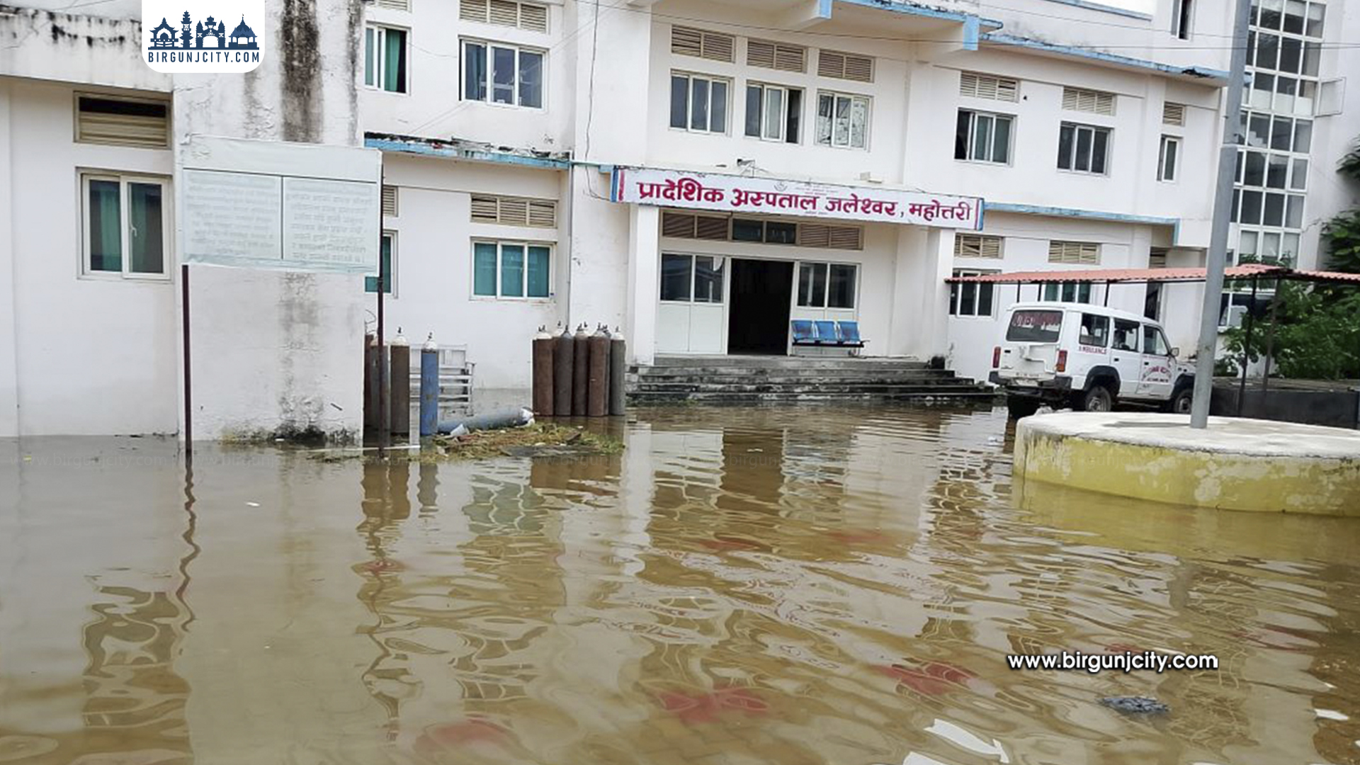 लगातारको अविरल वर्षापछि आएको बाढीका कारण प्रादेशिक अस्पताल जलेश्वर, विद्युत् प्राधिकरण जलेश्वर शाखा र सबस्टेशन, नेपाल टेलिकम, लोकसेवा आयोग, जिल्ला प्रशासन कार्यालय, जिल्ला अदालत लगायतका कार्यालयमा पानी पसेको छ ।