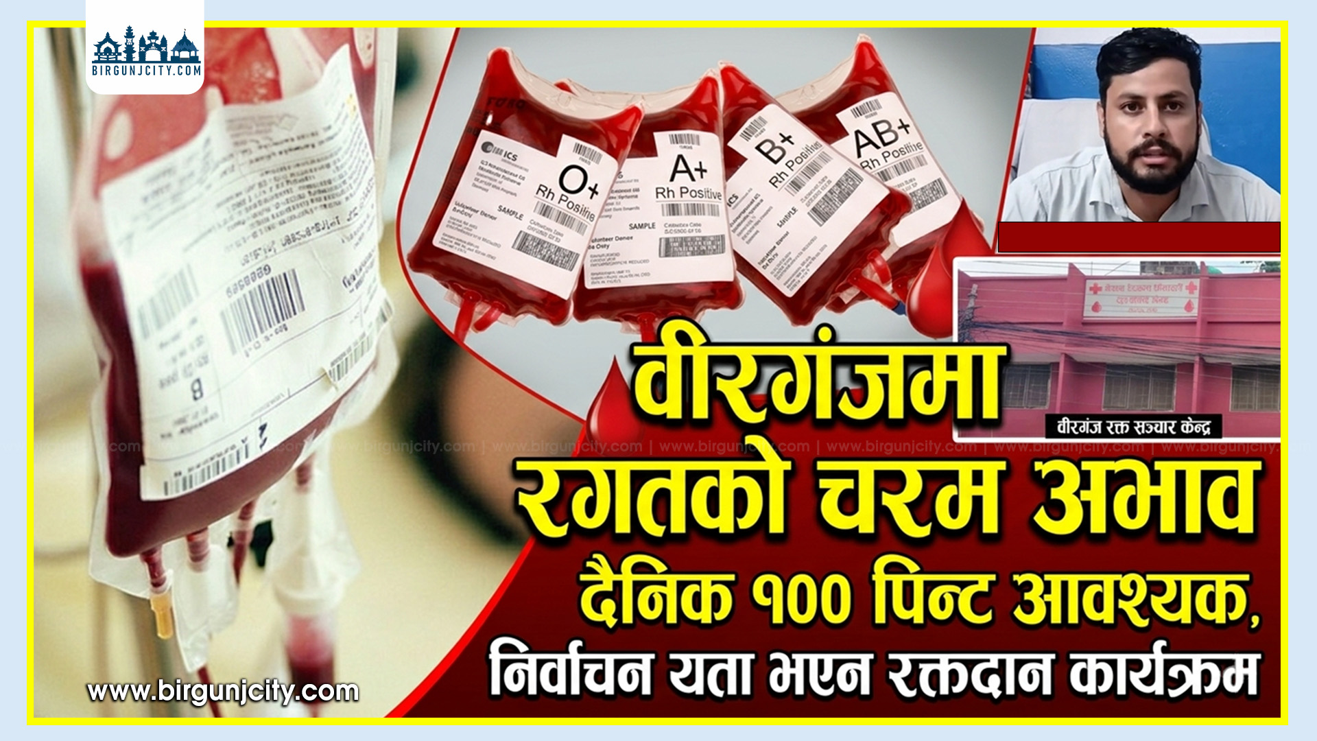 वीरगंजमा रगतको चरम अभाव दैनिक १०० पिन्ट आवश्यक, निर्वाचन यता भएन रक्तदान कार्यक्रम (भिडियो सहित)